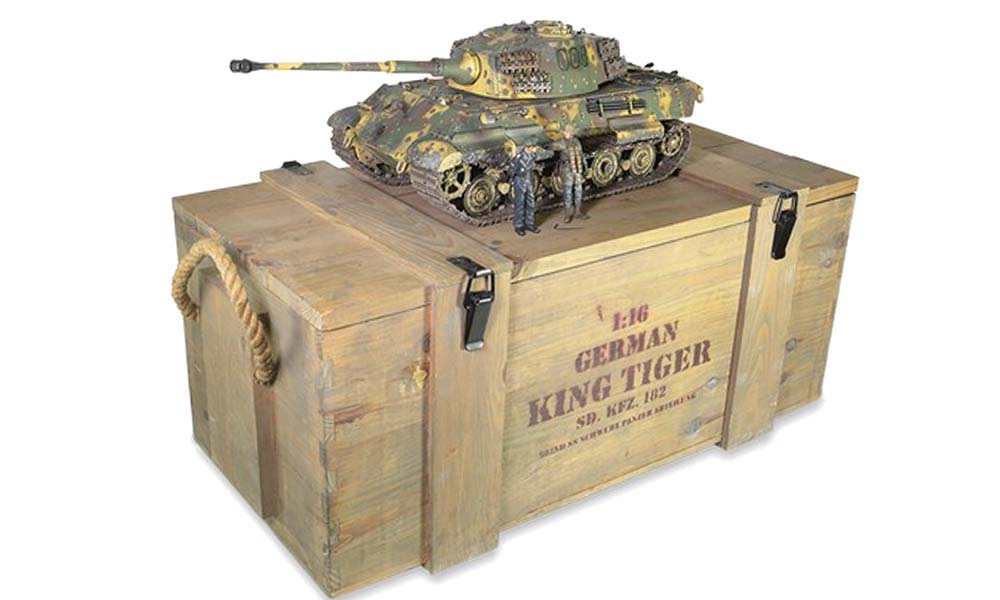 2005 为了进一步巩固我们作为大规模军用车辆的领先开发商的地位,我们发布了我们的首款1:16规模的静态车辆,其品牌为Extreme Metal系列——威猛的King Tiger Ausf。B重型储罐。这辆车捆绑着各种配件、文学和其他装备,装在一个沉重的木箱里,让人想起一个弹药箱。 |